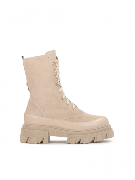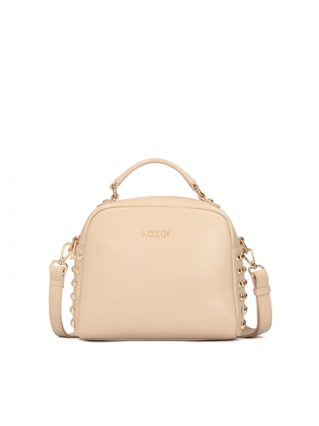The one-finger gloves, so called "pawpaw gloves", made of textile material and padded with soft plush, are a model that is extremely warm thanks to the common compartment for 4 fingers. These gloves are perfect for winter sports, shopping and walks in the snow. The beige colour will beautifully brighten up styles in dark tones. The gloves are decorated with the embroidered KAZAR monogram.