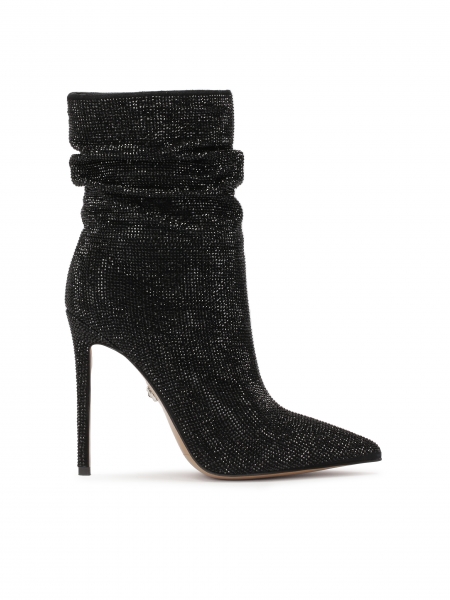 A large scrunchie hair elastic made of black fabric, thanks to the elegant embellishment of synthetic elements it acquires a more occasional character. You can successfully complement your formal styling with it. The black color is easy to match with any ensemble. The eraser holds the hair well and looks beautiful on it.