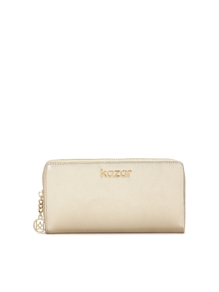 Gold pumps from the latest KAZAR wedding collection are made of top quality metalized natural leather, which attracts the eye and adds an exclusive character. The delicate shine blends beautifully with elegant wedding outfits. The pointed toe optically lengthens the legs, while emphasizing the subtlety and gracefulness of the silhouette. On the bottom of the shoe there is a gold KAZAR monogram, decorated with a delicate crystal, which adds prestige and uniqueness. Their design combines classic elegance with modern glamour, making them the perfect choice for that special day.