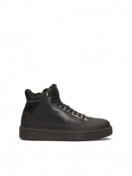 Men’s black gloves made of high quality grain leather are a fashionable addition to urban, casual fashion sets. The gloves are padded with fabric and finished with a puller and an adjustable strap to protect your hands from cold. The tips of the index finger and thumb are finished with fabric which makes it easier to use the smartphone.