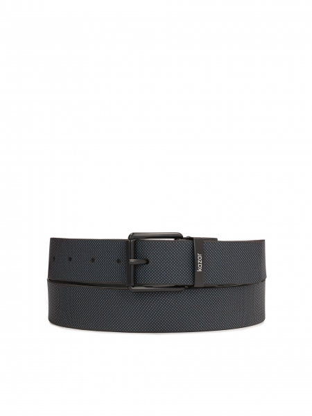 Men's socks in blue color are made of high-quality cotton (80%), which provides comfort and breathability. The addition of polyamide (17%) increases durability and abrasion resistance, while elastane (3%) provides flexibility and a perfect fit to the foot. The ornamentation of the socks includes subtle lines running on the outside and inside, which give them an elegant look. The decorative lines are delicately highlighted and finished with the KAZAR logo, which is located on both the inside and outside of the socks, adding prestige and uniqueness. The socks are ideal for everyday wear as well as for more formal occasions, combining comfort with elegant design.